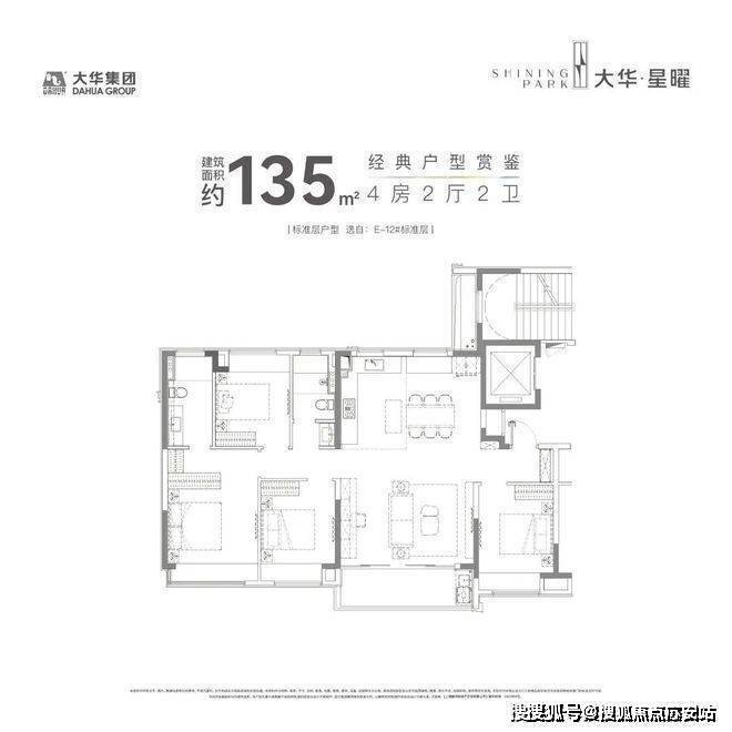 建面约120㎡的产品,市面上大多都是3房,但大华星曜做了4房的设计,实用性非常出色。